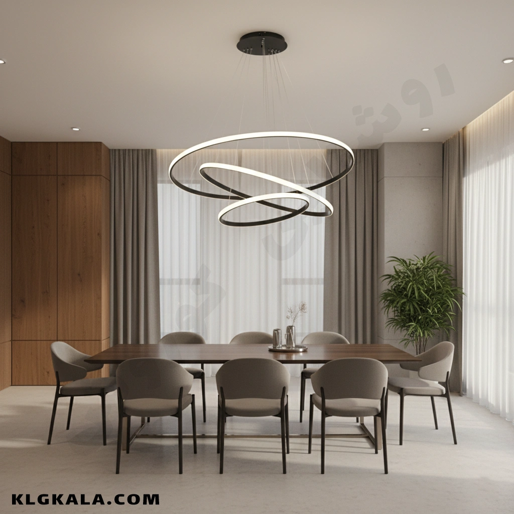 - زیبایی بصری: طراحی حلقهای این لوستر، جلوهای منحصر به فرد و مدرن به فضا میبخشد. با این لوستر، هر فضایی به یک اثر هنری تبدیل میشود.