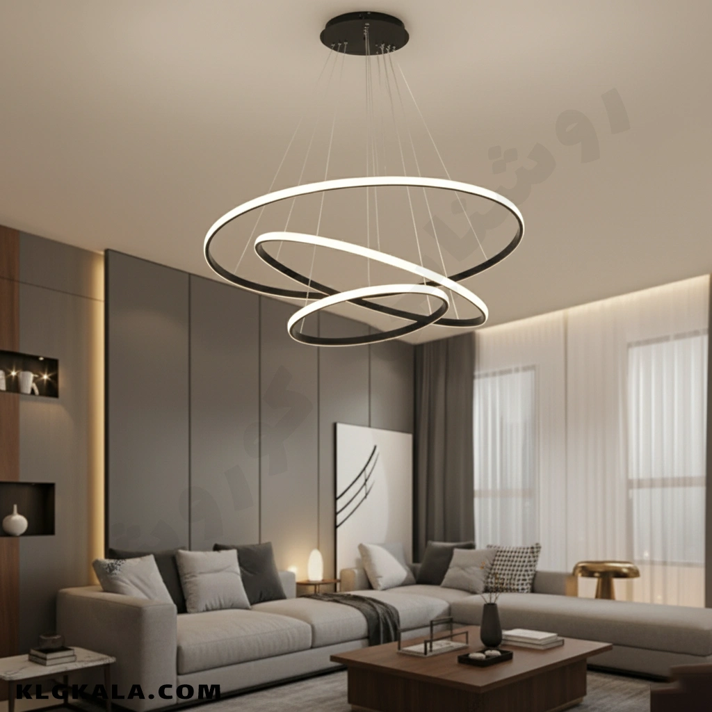 لوستر مدرن اس ام دی مدل حلقهای 3 طبقه 80 – 60 – 40 : جلوهای از هنر و تکنولوژی در خانه شما