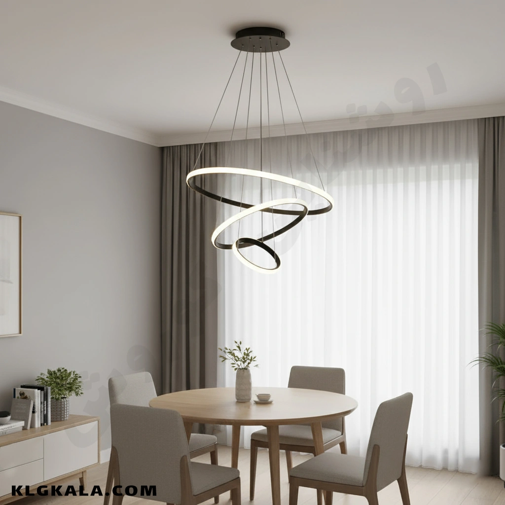 لوستر مدرن اس ام دی مدل حلقهای 3 طبقه 60 – 40 – 20 : جلوهای از هنر و تکنولوژی در خانه شما